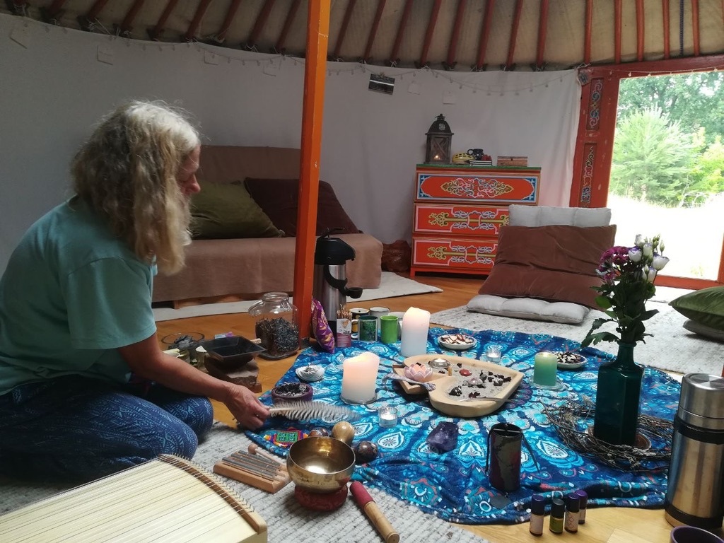 Die Jurte bietet hierfür einen wundervollen Raum! Sie lädt uns ein geschützt in der Natur mit uns selbst zu sein oder in Gemeinschaft zusammenzukommen.